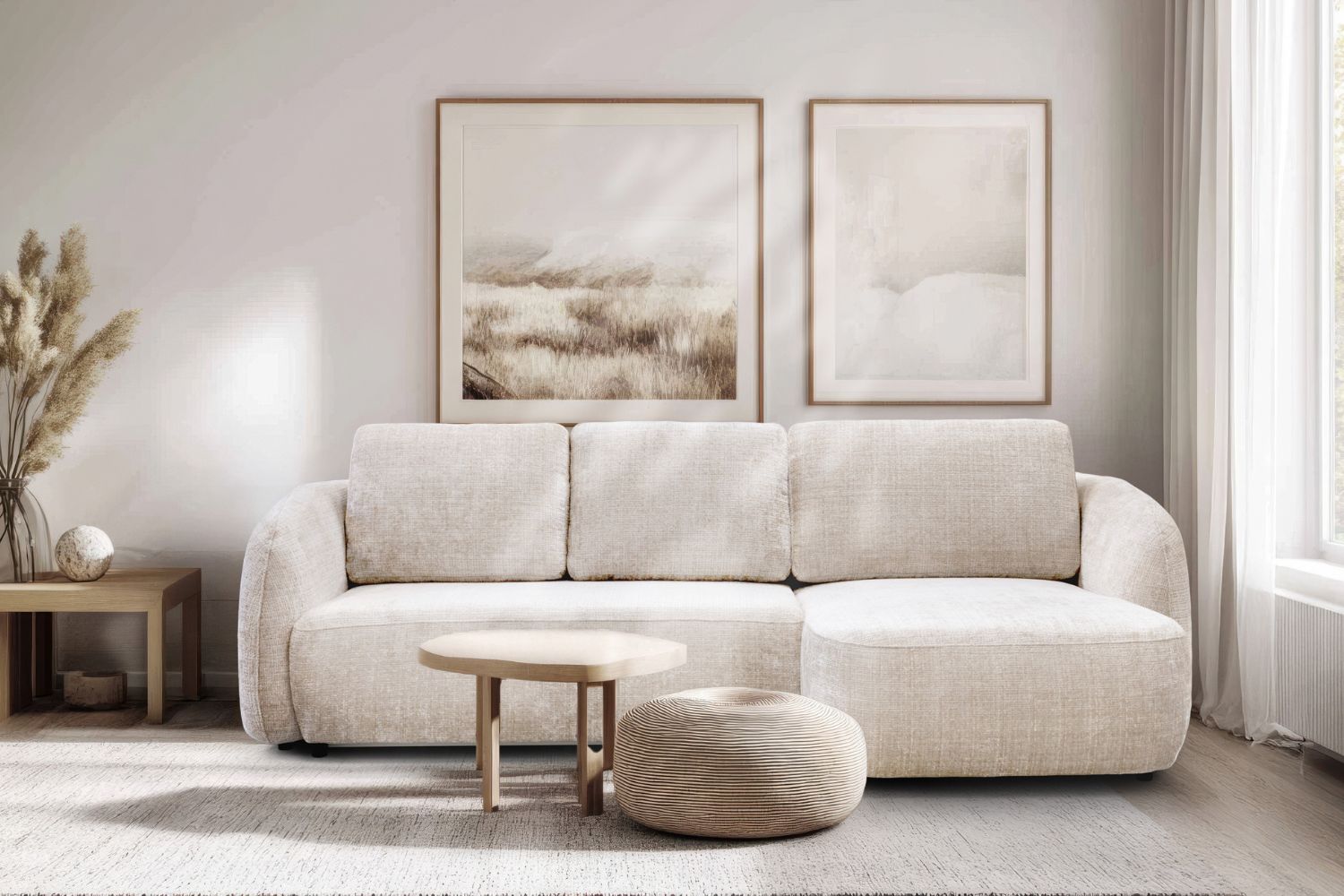 Canapé D'angle Convertible PORTO Tissu Marbella Blanc Cassé