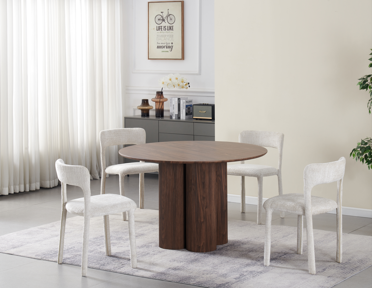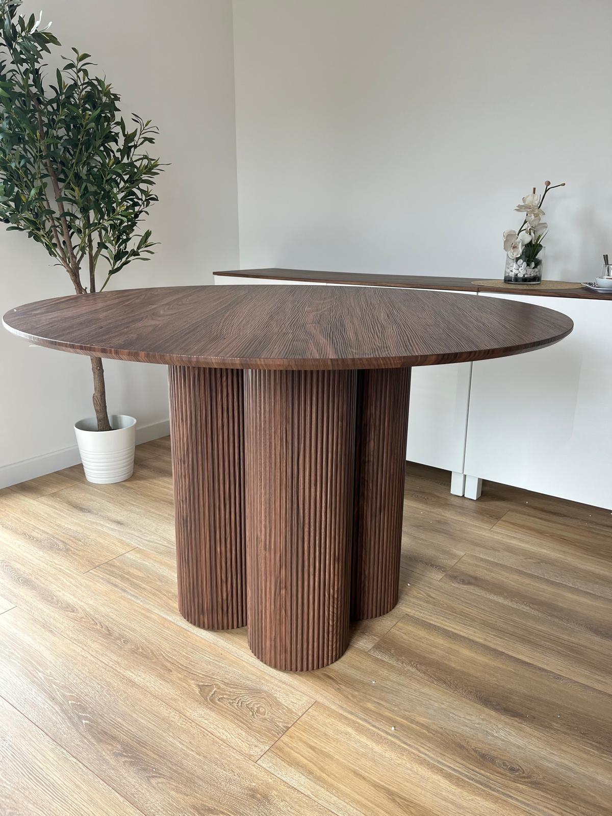 Découvrez la Table de séjour Théa, l'élégance à portée de main. Son pied strié et sa teinte noyer intemporelle s'intègrent harmonieusement dans tous les styles d'intérieur. Parfaite en association avec nos tables basses et chaises aux pieds noyer assortis, elle crée une ambiance cohérente et raffinée. Un choix malin qui allie design épuré, qualité et accessibilité. Transformez votre espace de vie sans compromis.